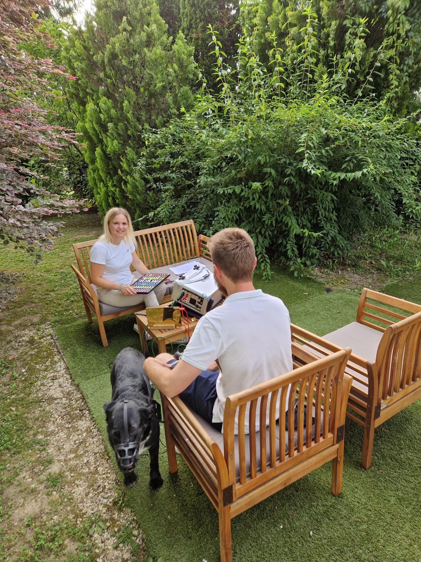 V času terapije lahko vaš ljubljenček sproščeno stoji, sedi ali leži. Sama terapija traja navadno 20 – 40 min, celoten obisk do 45 min.